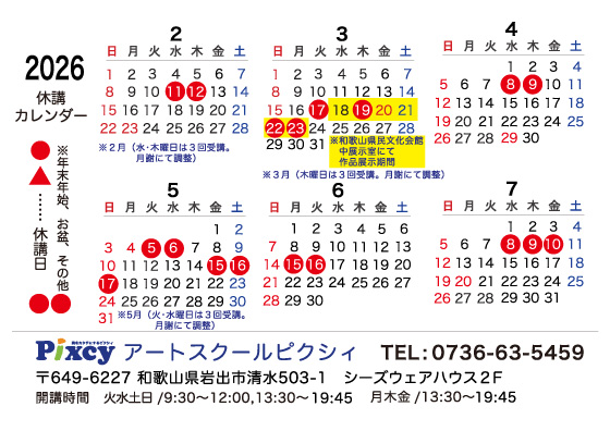 ■ 共同制作:展示用作品制作開始(希望者のみ) ■アートスクールピクシィ作品展2026(県民文化会館) 3月18日(水)〜3月23日(月)開催